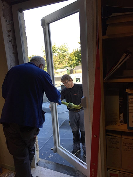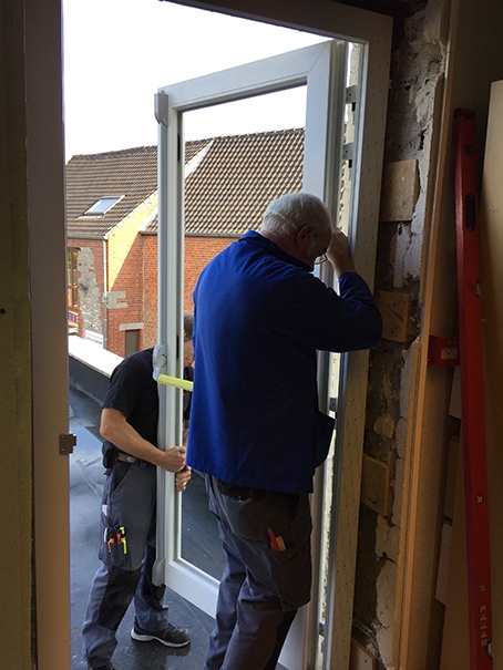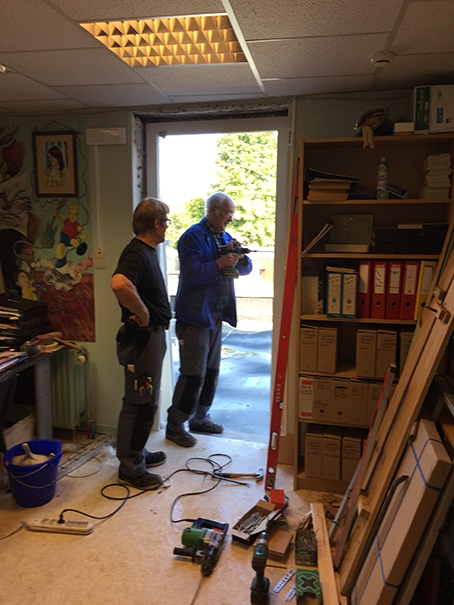 La nouvelle porte de secours fait l’objet de toute l’attention des menuisiers ….