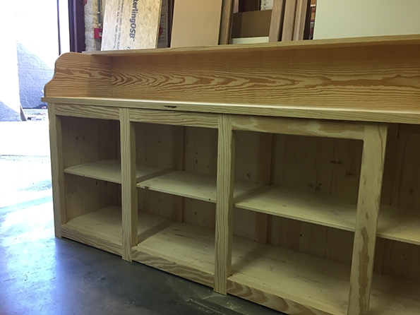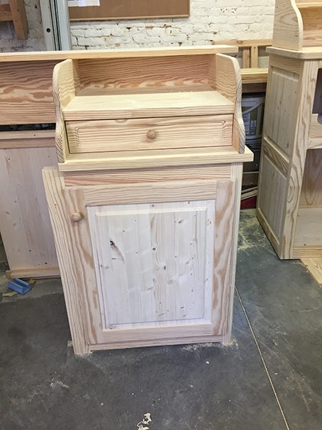Dans l’atelier Menuiserie, le bar et le vaisselier n’attendent plus que d’être transférés dans les locaux du 19 rue de Neufvilles.