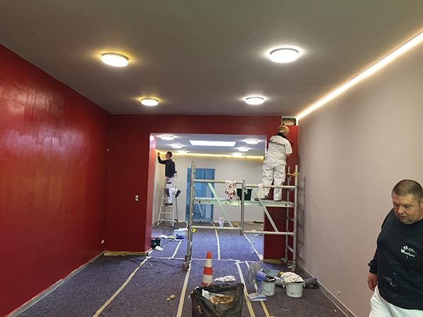 Alors qu’à l’extérieur, les travaux de terrassement de la future terrasse débutent …