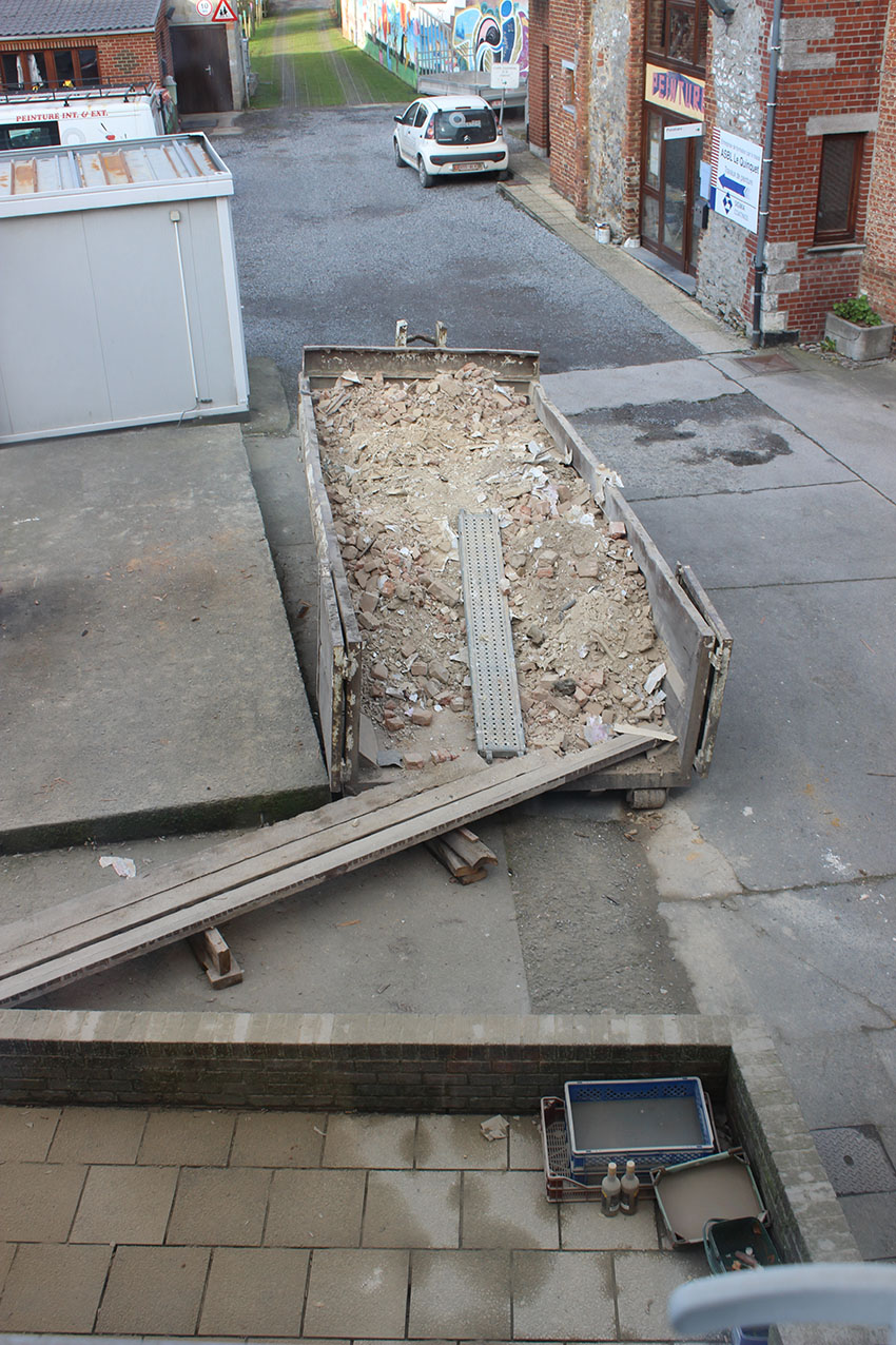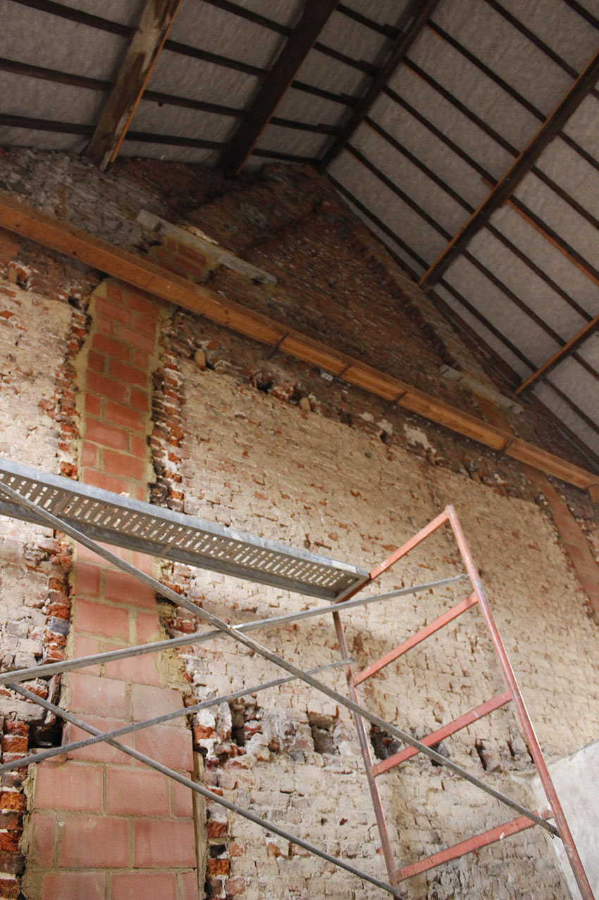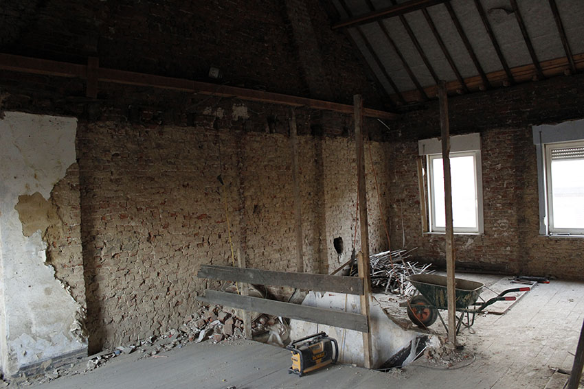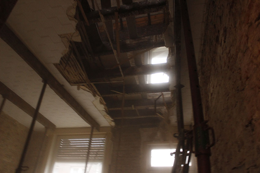 Derniers jours de décembre : on continue à démonter les planchers afin de remonter vers la toiture.