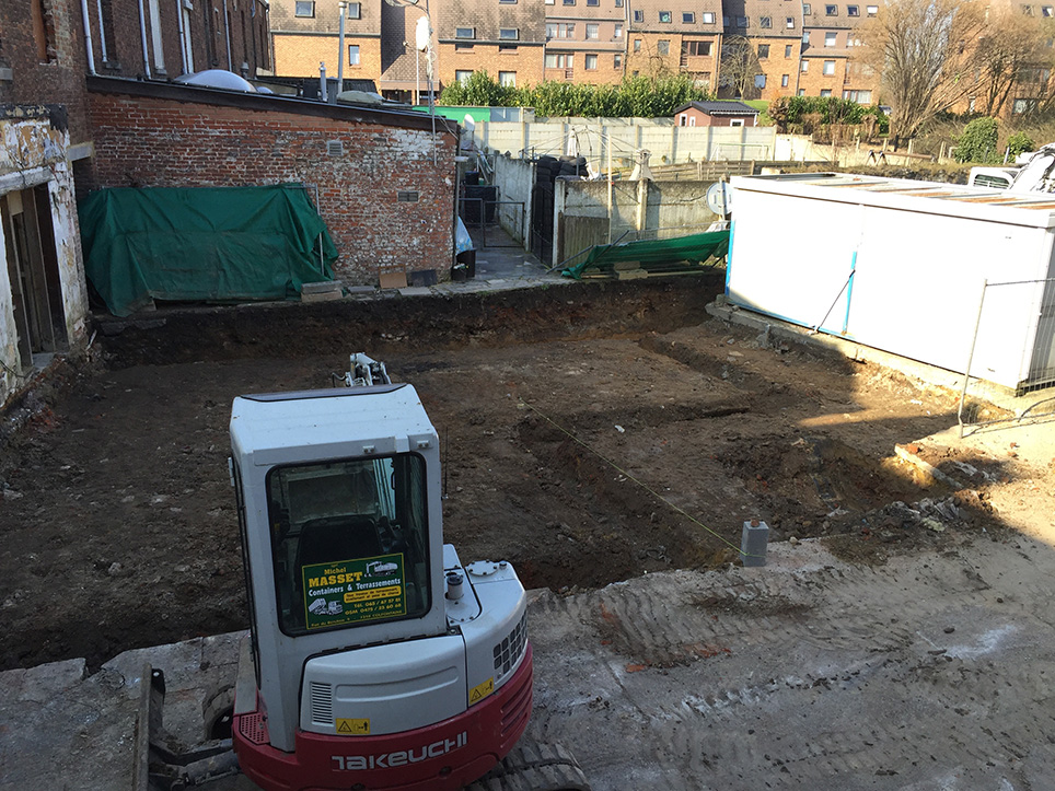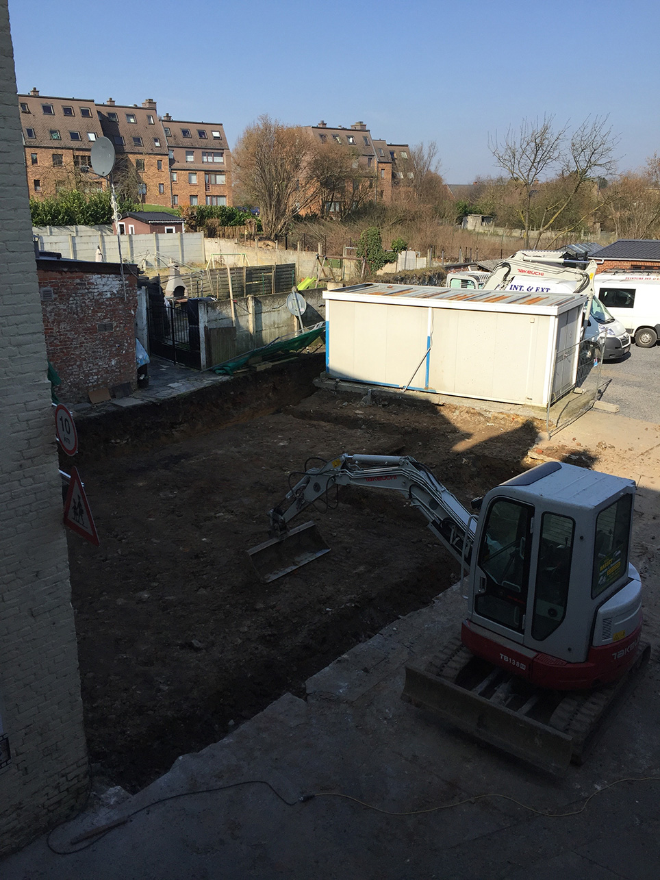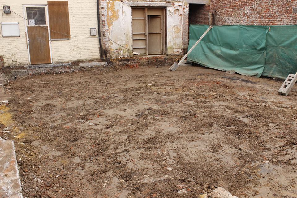 Les décombres parties, il reste à mettre de niveau le terrain et de creuser les fondations.