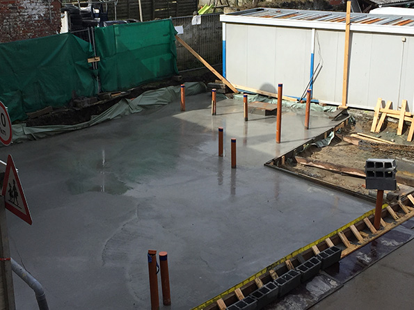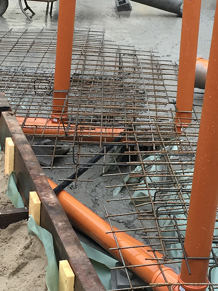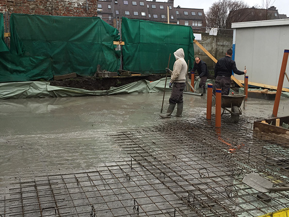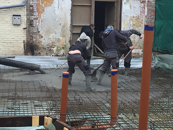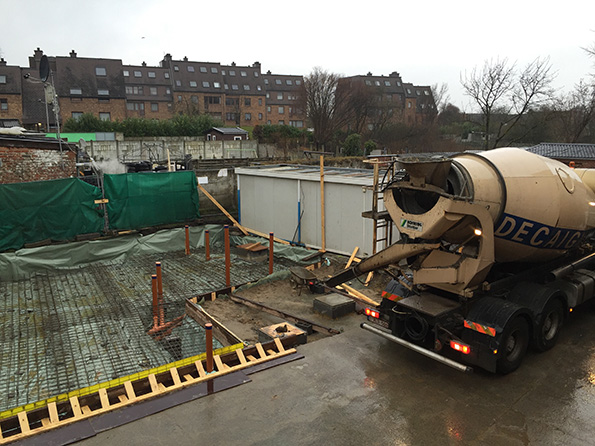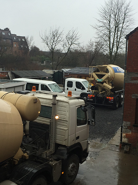 ses propres écluses! La chape sera donc coulée sous la pluie! Débute alors la valse des mélangeurs ….