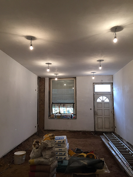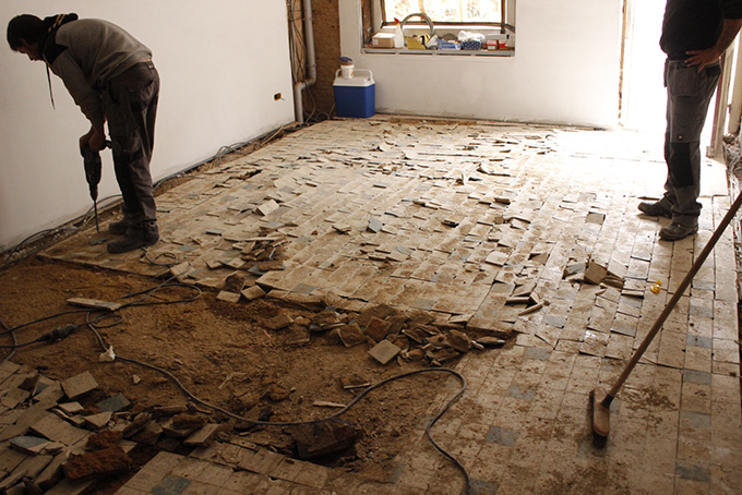 Au rez de chaussée du 19, on fait sauter l’ancien carrelage ….