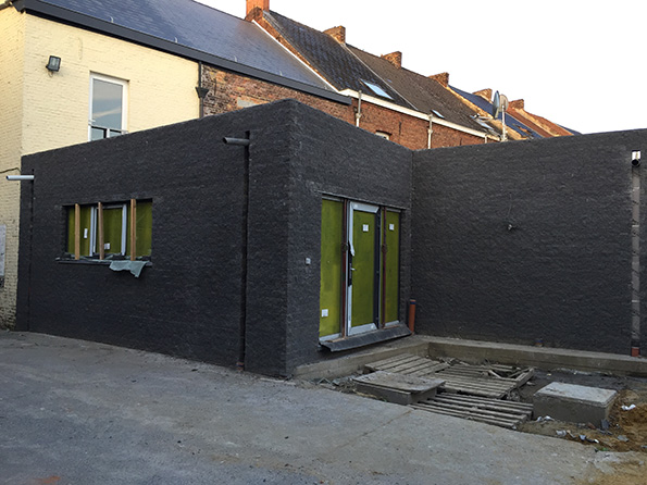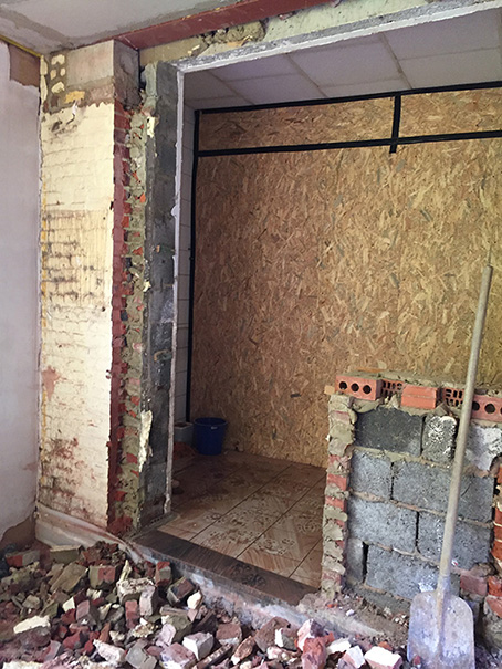 On commence par percer la baie en vue de l’extension de la cuisine.