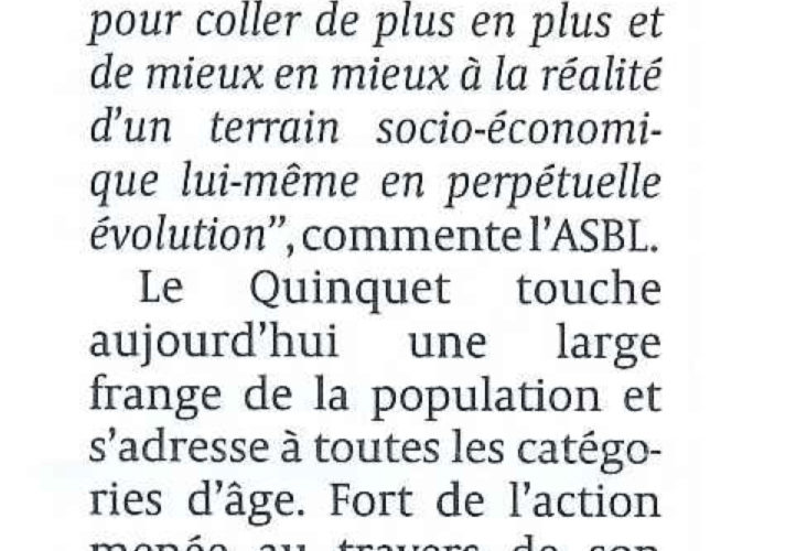Actualités Echos de presse Le Quinquet souffle ses 40 bougies – La DH (23 août 2019) par webmaster|Publié 29 novembre 2019